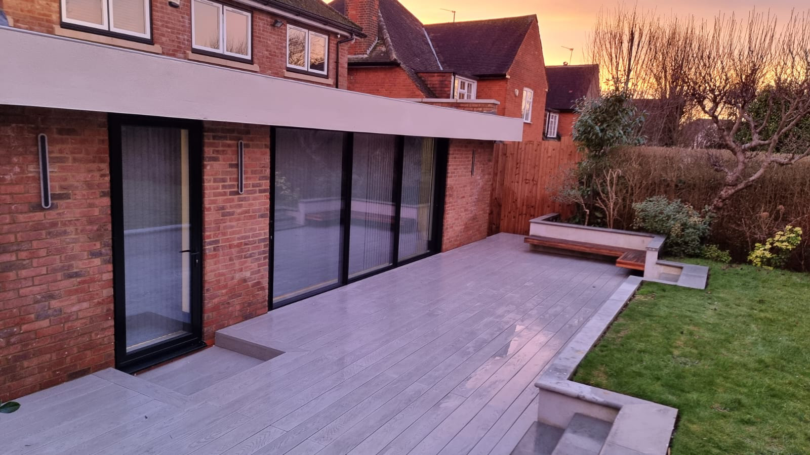 - Composite decking – installed durable, low-maintenance boards with a natural wood texture.
