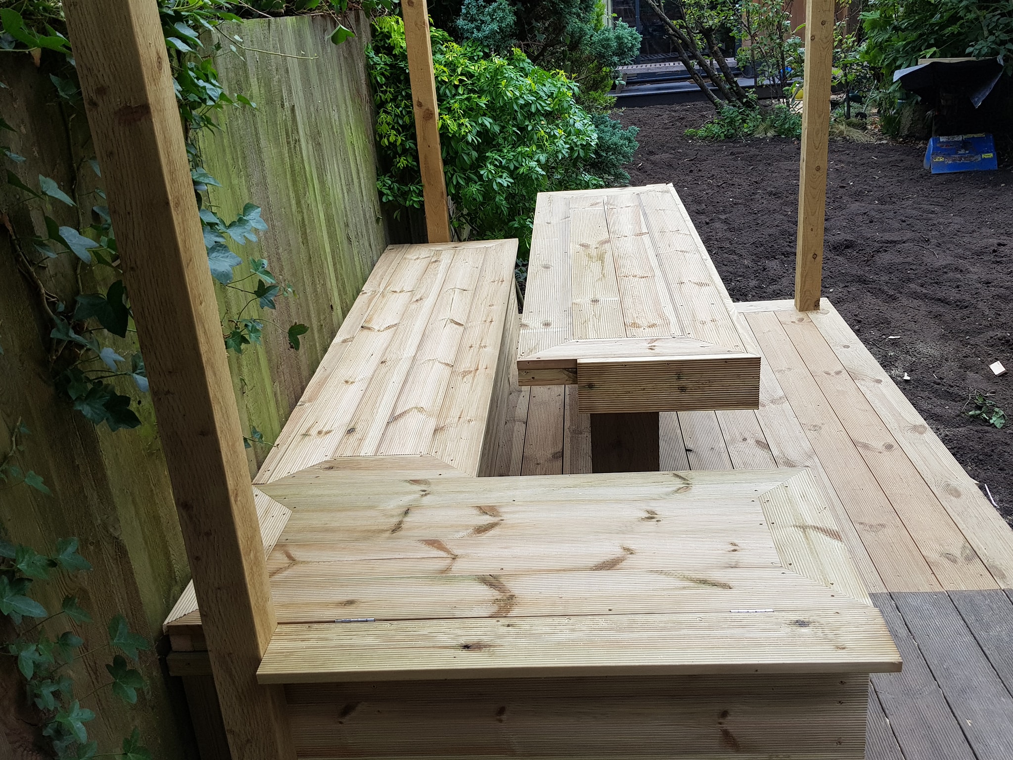 • Pergola installation –added a timber pergola frame to create structure and shade.