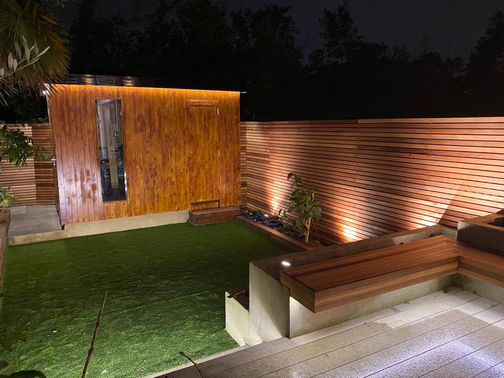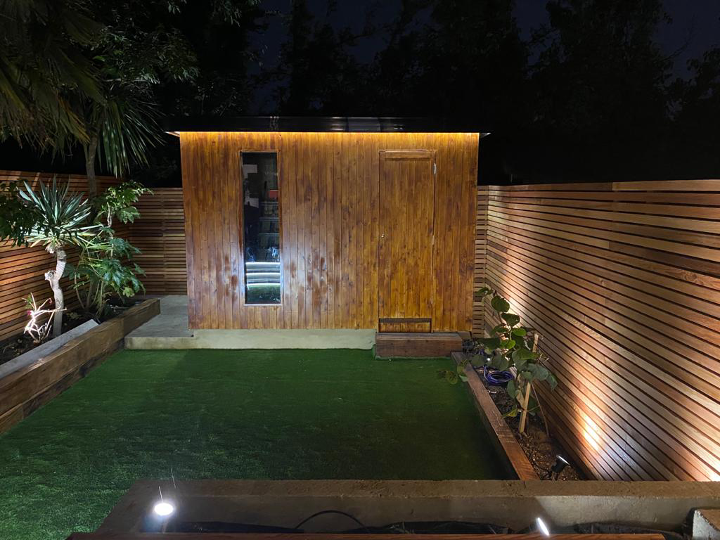 Besar Construction delivered a stylish and modern garden transformation in Ealing, London, featuring a bespoke timber garden room, lighting design, and premium finishes.
